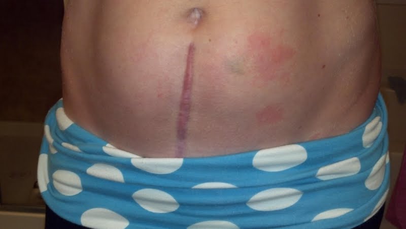 Lastly, you will notice the bruises and whelps around the scar. This, my friends, is the happiest I have ever been to see bruises on my body. They represent the shots I give myself every day and what I am willing to do to become a mommy.