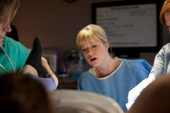 Jill's photo of me watching as Liam crowns
